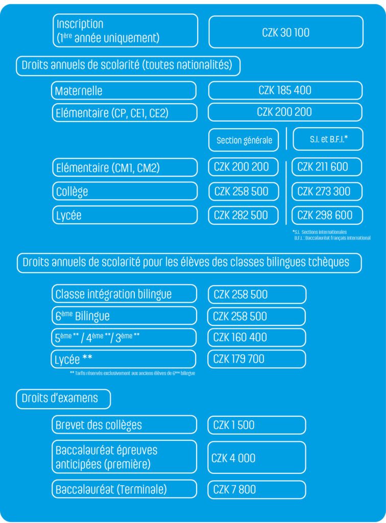 Tarifs année scolaire 2026-2027